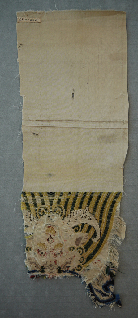 Fragment (Japan); silk, paper with applied gold foil; Warp x Weft: 28.9 x 11.1 cm (11 3/4 x 4 3/8 in.); Gift of Miss Beatrice Kates; 1940-4-17