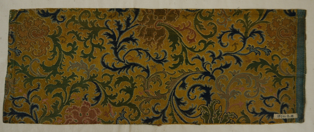 This is a Textile. It is dated late 18th–early 19th century and we acquired it in 1940. Its medium is silk and its technique is compound satin. It is a part of the Textiles department.