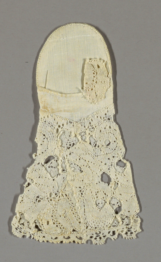 This is a Pair of mitts. We acquired it in 1940. Its technique is bobbin lace of discontinuous tape. It is a part of the Textiles department.