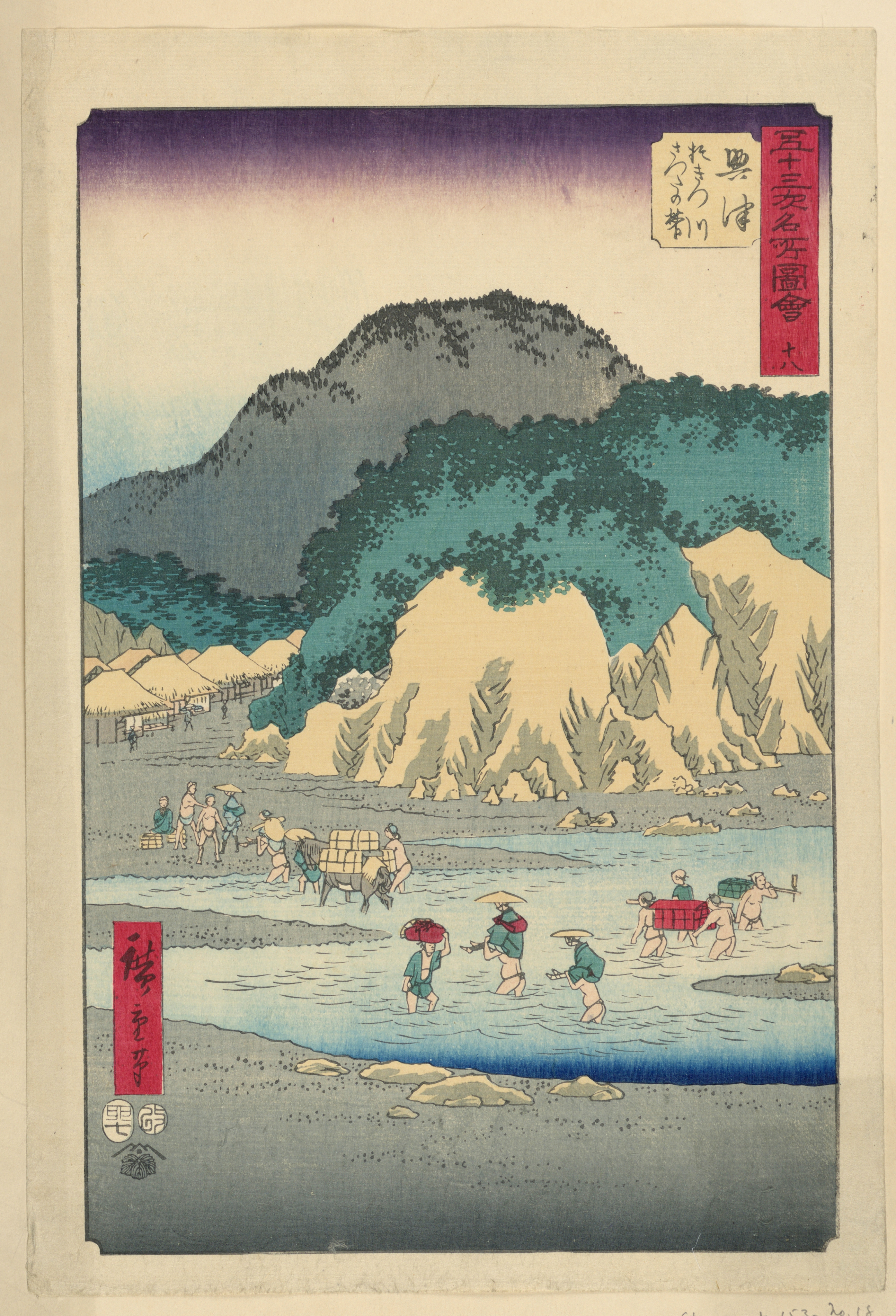 Print, Okitsu from the series 53 Stations of Tokaido; Ando Hiroshige (Japanese, 1797 - 1858); Japan; woodblock print in colored ink on paper ; Gift of the Estate of Mrs. Robert H. Patterson; 1941-31-215