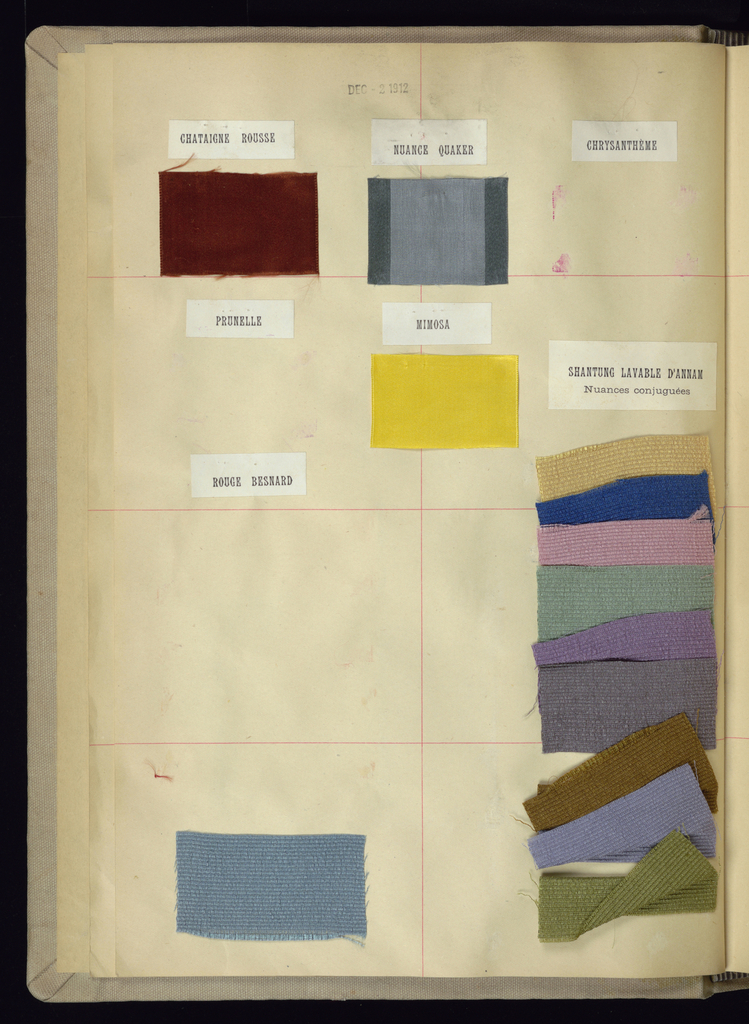 This is a Manufacturer's sample book. It was manufactured by Herman A. Elsberg. It is dated 1912–1916 and we acquired it in 1941. Its medium is paper, silk, wool. It is a part of the Textiles department.