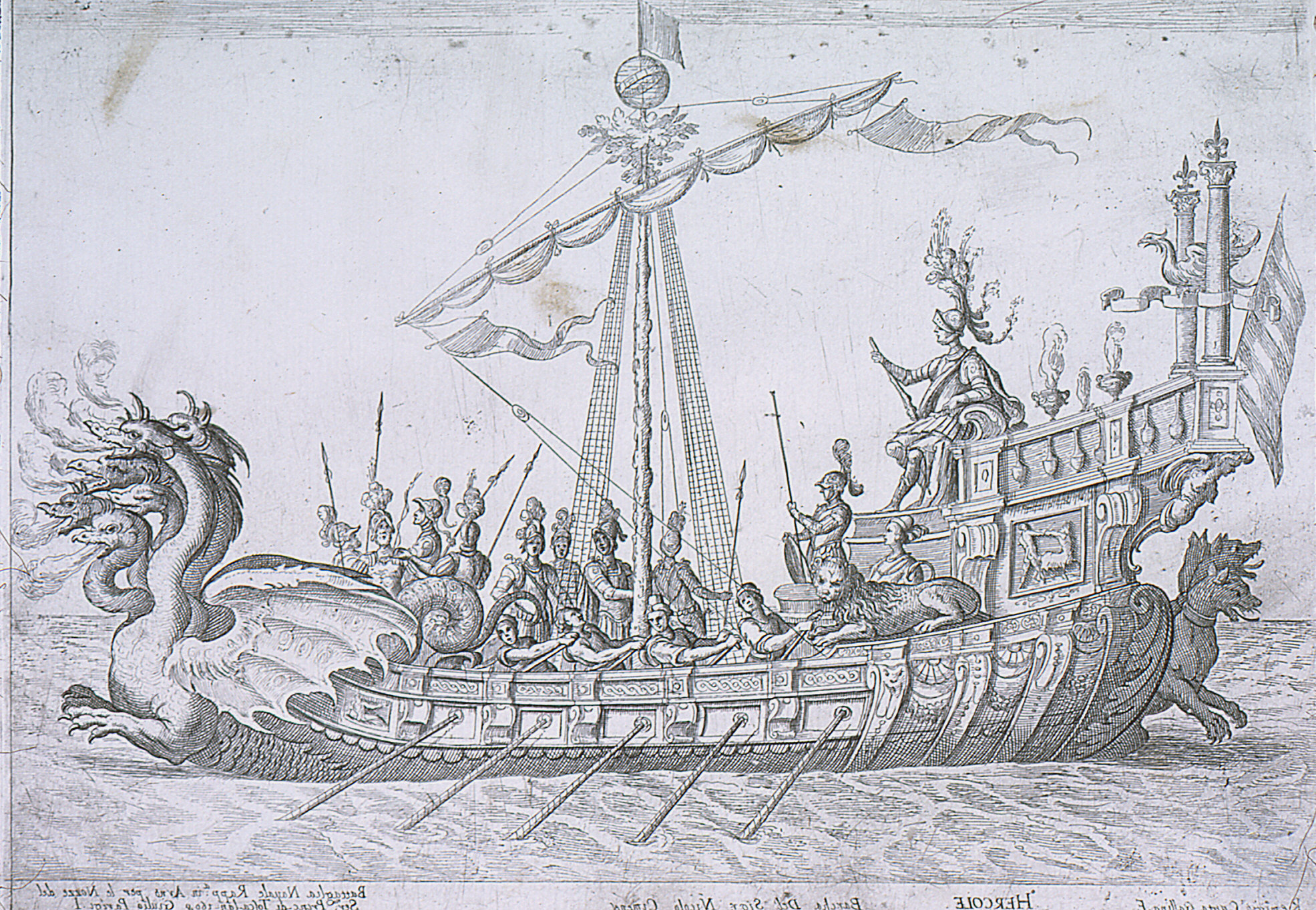 <ref name=CH>{{cite web |url=https://www-5.collection.cooperhewitt.org/objects/18563545/ |title=Print, Hercole barca del Sig. Nicolo Cimenes, from Vessels of the Argonauts for the wedding celebration of Cosimo de' Medici in 1608, plate 19 |author=Cooper Hewitt, Smithsonian Design Museum |accessdate=20 December 2025 |publisher=Smithsonian Institution}}</ref>