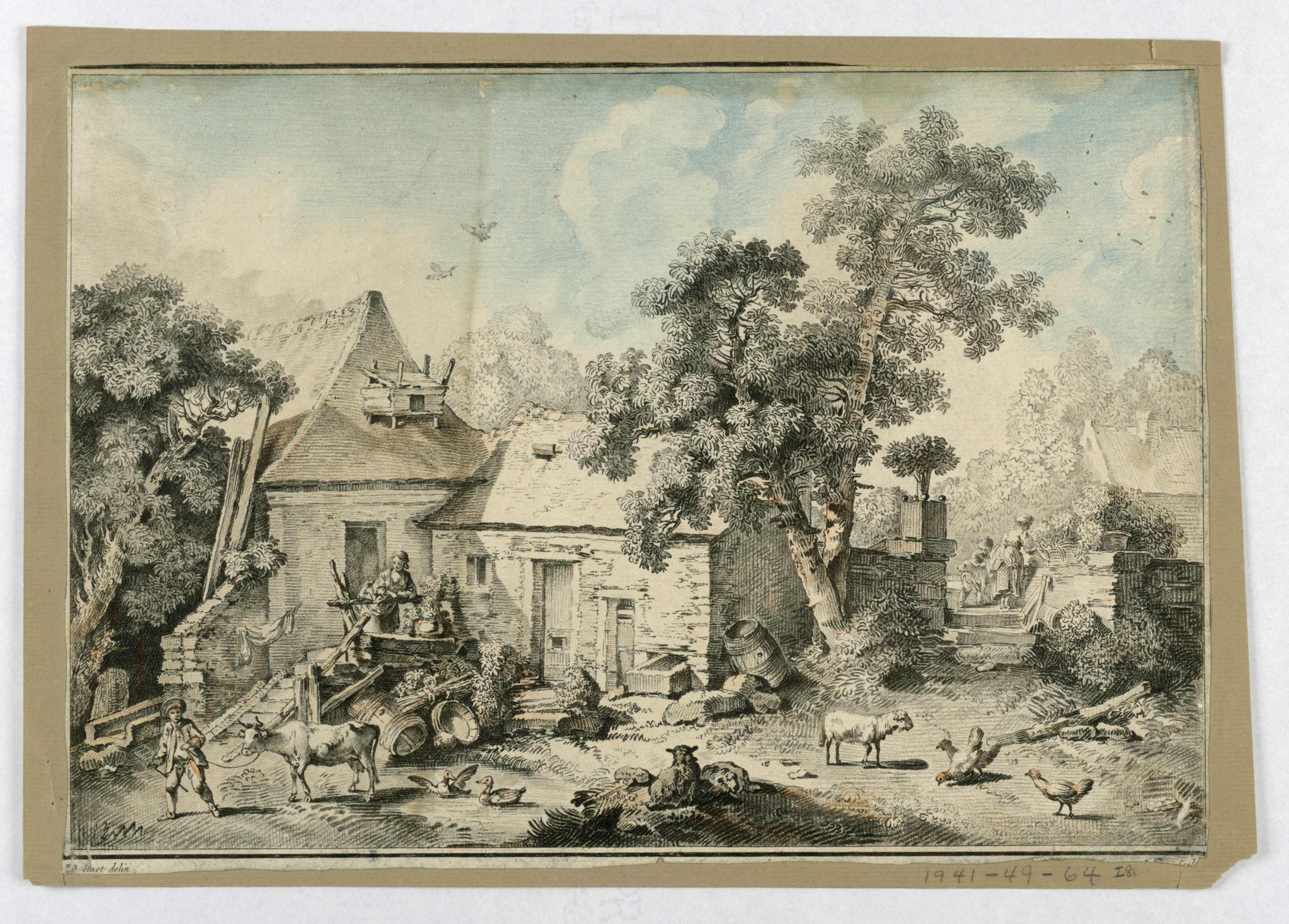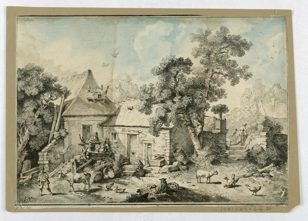 This is a Drawing. It was made by Jean-Baptiste Marie Huet and after François Boucher. It is dated 19th century and we acquired it in 1941. Its medium is brush and water colors, pen and black ink on paper. It is a part of the Drawings, Prints, and Graphic Design department.