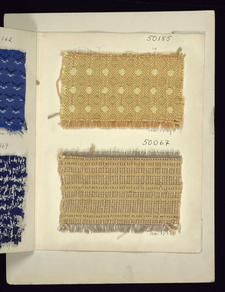 This is a Sample book. It is dated 1940 and we acquired it in 1941. Its medium is wool, linen, cotton, silk, rayon and its technique is various handweaves. It is a part of the Textiles department.