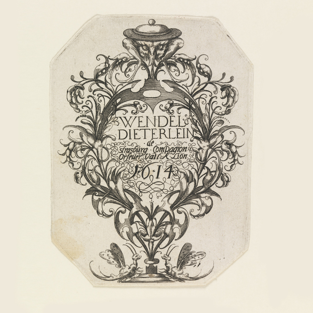 Inscribed in plate: WENDEL / DIETERLEIN / de strasburg Compagnon / orfeuer vait A Lion / 1614