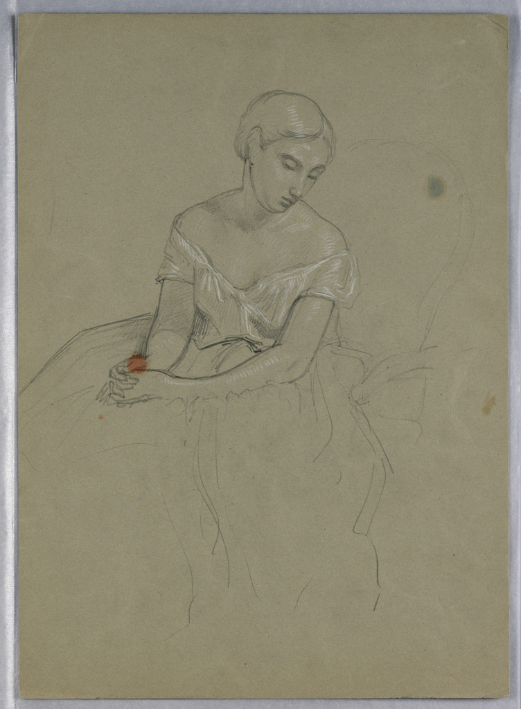 This is a Drawing. It was created by Daniel Huntington. It is dated 1860 and we acquired it in 1942. Its medium is graphite, white chalk support: gray wove paper. It is a part of the Drawings, Prints, and Graphic Design department.