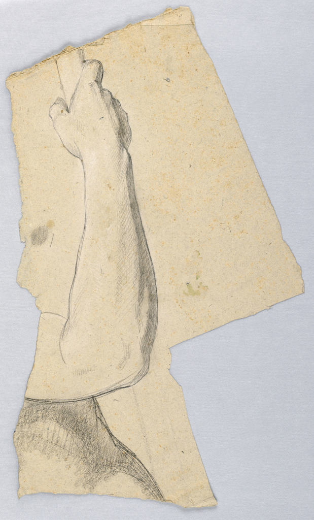 Drawing, Study of an Arm for "Tribute Money"; Daniel Huntington (American, 1816–1906); USA; graphite, black crayon, white chalk on buff wove paper; 41.3 x 29.5 cm (16 1/4 x 11 5/8 in.); Bequest of Erskine Hewitt; 1942-50-69