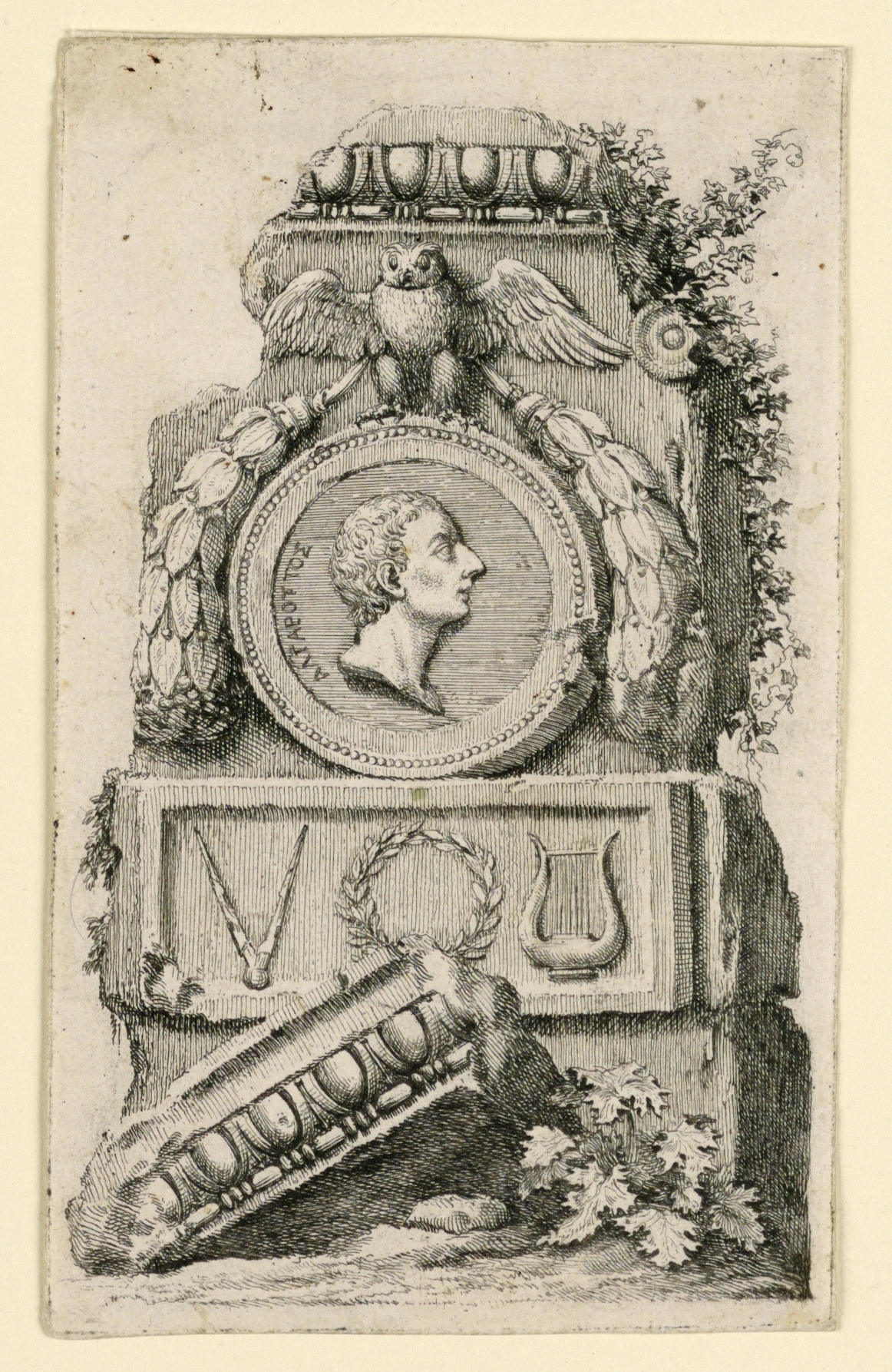 Print, Book Ornament of a Classical Ruin with the Medallion Portrait of Francesco Algarotti (1712-1764)