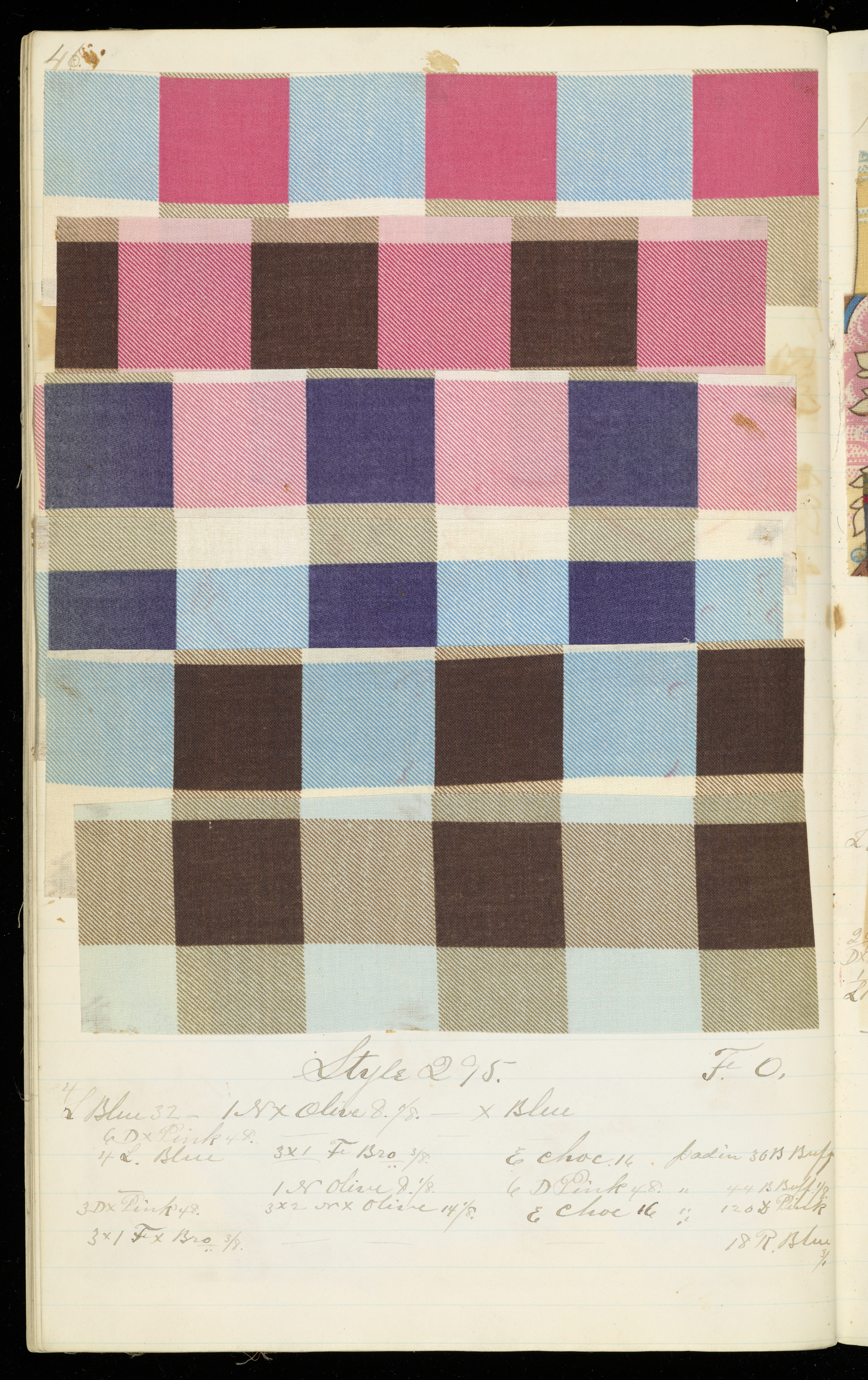 This is a Printer's sample book. It was manufactured by Cocheco Print Works. It is dated 1884 and we acquired it in 1945. Its medium is cotton samples adhered to paper, bound in cardboard and its technique is samples printed on plain weave. It is a part of the Textiles department.
