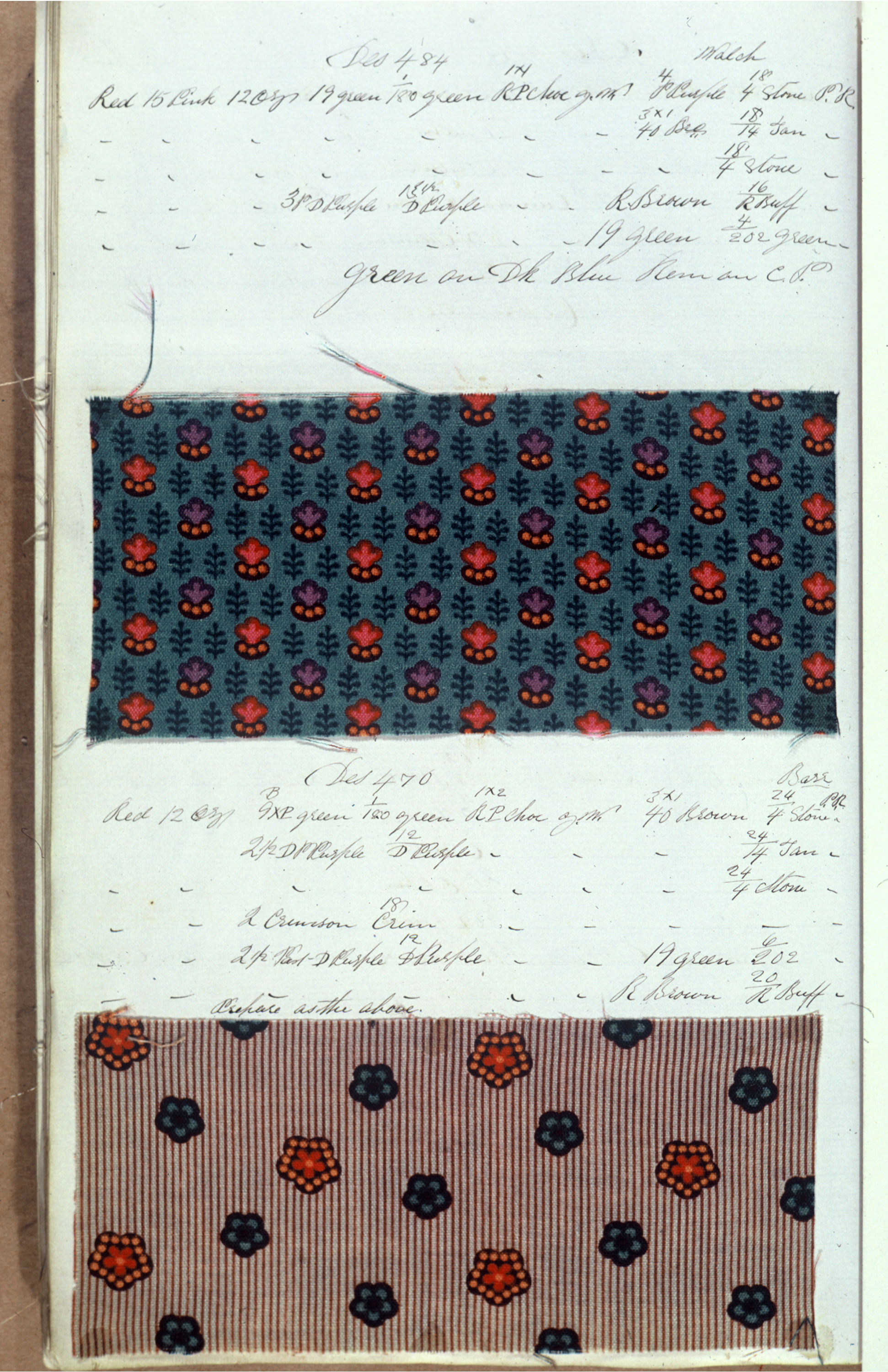 Dyer's Record Book (USA); Company: Old Pacific Print Works; cardboard, paper, cotton; 20.6 cm x 34.0 cm; Gift of Frederick J. Whitehead from the collection compiled by his father Cornelius Whitehead at the Pacific Print Works of Lawrence, Massachusetts; 1945-55-14