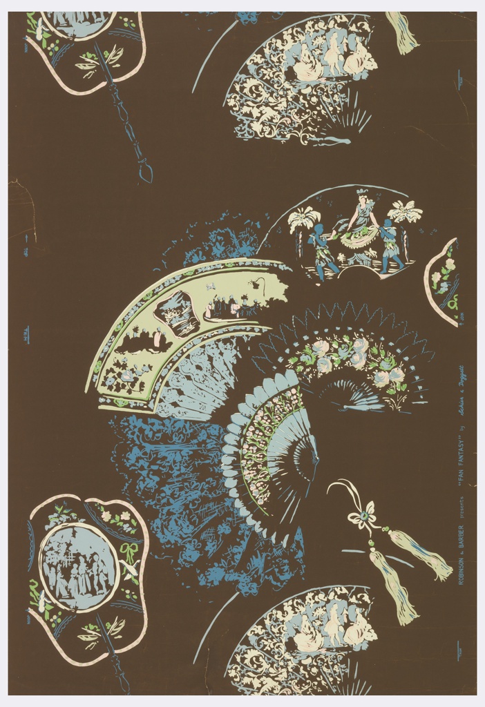 Printed in right selvedge: Robinson & Barber presents Fan Fantasy by Schier and Doggett.