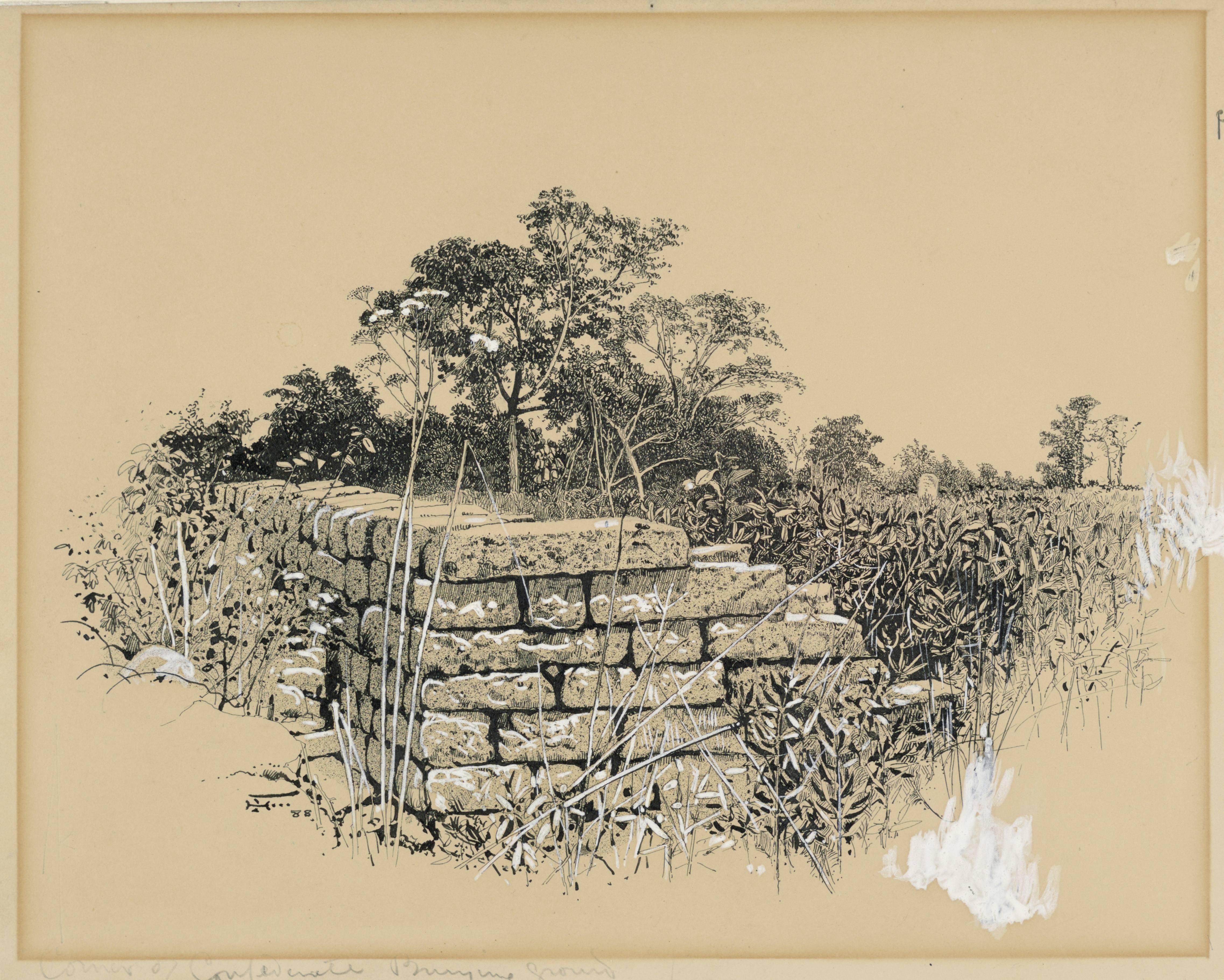 Drawing, Corner Confederate Burying Ground; Harry Fenn (American, 1845–1911); USA; pen and ink heightened with white gouache on tan paper; 23.5 × 32 cm (9 1/4 × 12 5/8 in.); Gift of Willis M. Rose; 1947-87-1