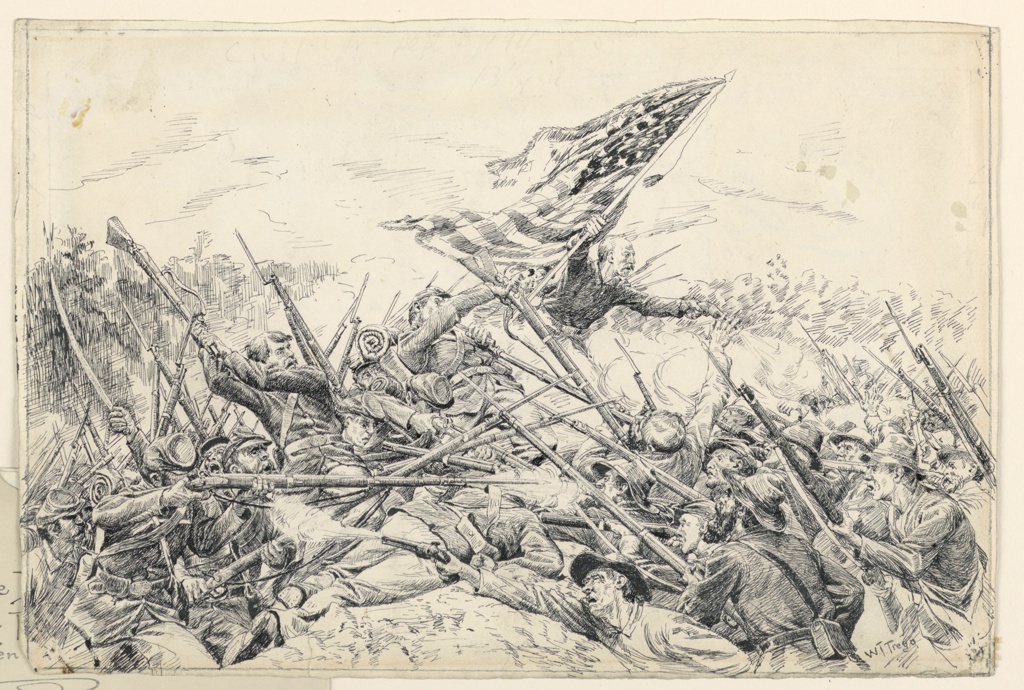 Drawing, Hancock's Corps Assaulting the Works at the "Bloody Angle"