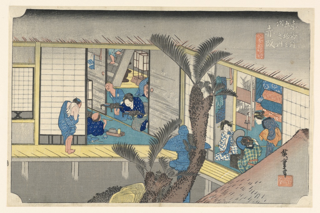 Print, Akasaka, Interior of Inn, in The Fifty-Three Stations of the Tokaido Road (Tokaido Gojusan Tsugi-no Uchi)