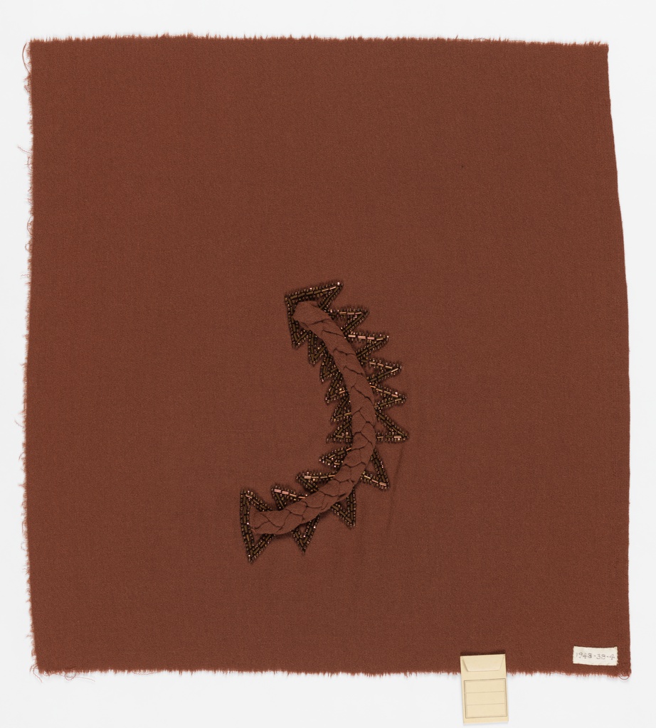 Embroidery Sample (USA); Manufactured by George Kaplan Manufacturing Company, Inc.; brown cloth, glass beads; H x W: 43 x 39 cm (16 15/16 x 15 3/8 in.); 1948-38-4