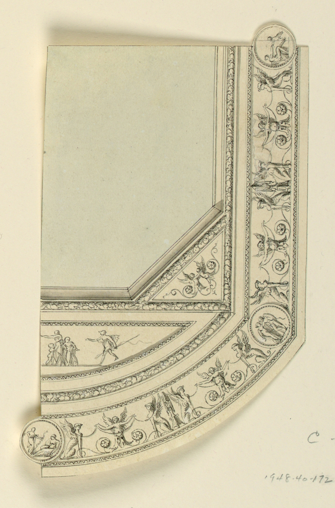 Drawing, Qiarter Section of Painted Ceiling; Designed by Unknown; England; Museum purchase through gift of Mrs. John Innes Kane; 1948-40-172