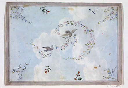 Drawing, Ceiling Design with Doves and Flower Garlands, possibly for the Entrance Hall