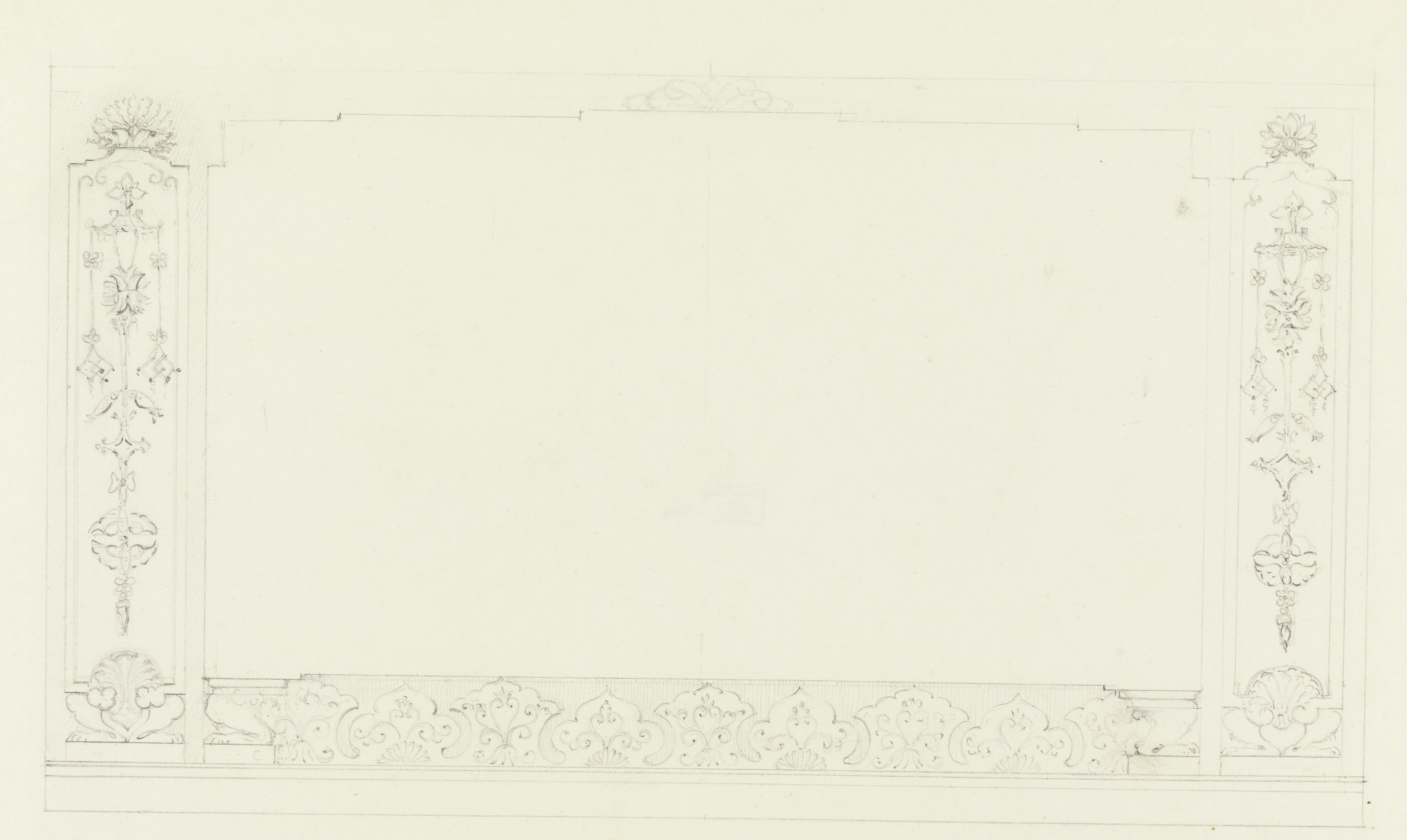 Drawing, Design for a Wall Decoration, Possibly for the Corridor; Designed by Frederick Crace (English, 1779–1859); England; graphite on wove paper; Overall: 27.5 x 37.7 cm (10 13/16 x 14 13/16 in.); Museum purchase through gift of Mrs. John Innes Kane; 1948-40-183