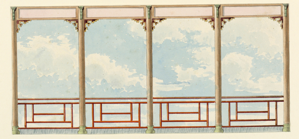 Drawing, Wall for Decoration, perhaps for corridor, Royal Pavilion, Brighton; Designed by Frederick Crace (English, 1779–1859); England; brush and watercolor on paper; 11.4 x 24.7 cm (4 1/2 x 9 3/4 in.); Museum purchase through gift of Mrs. John Innes Kane; 1948-40-40