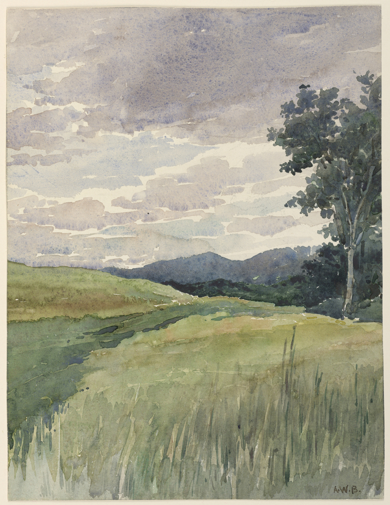 Drawing, Landscape of Countryside; Arnold William Brunner (American, 1857–1925); USA; brush and watercolor on paper; 30.1 × 22.9 cm (11 7/8 × 9 in.); Gift of Mrs. Arnold W. Brunner; 1948-47-18