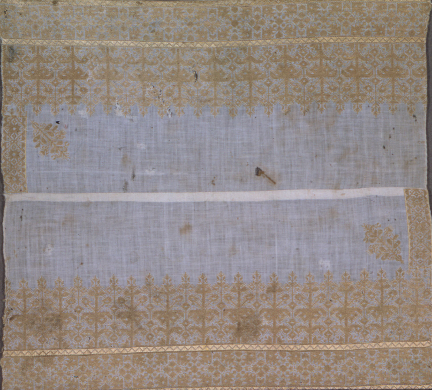 This is a Textile. It is dated 19th century and we acquired it in 1949. Its medium is silk, gilded paper and its technique is compound twill. It is a part of the Textiles department.