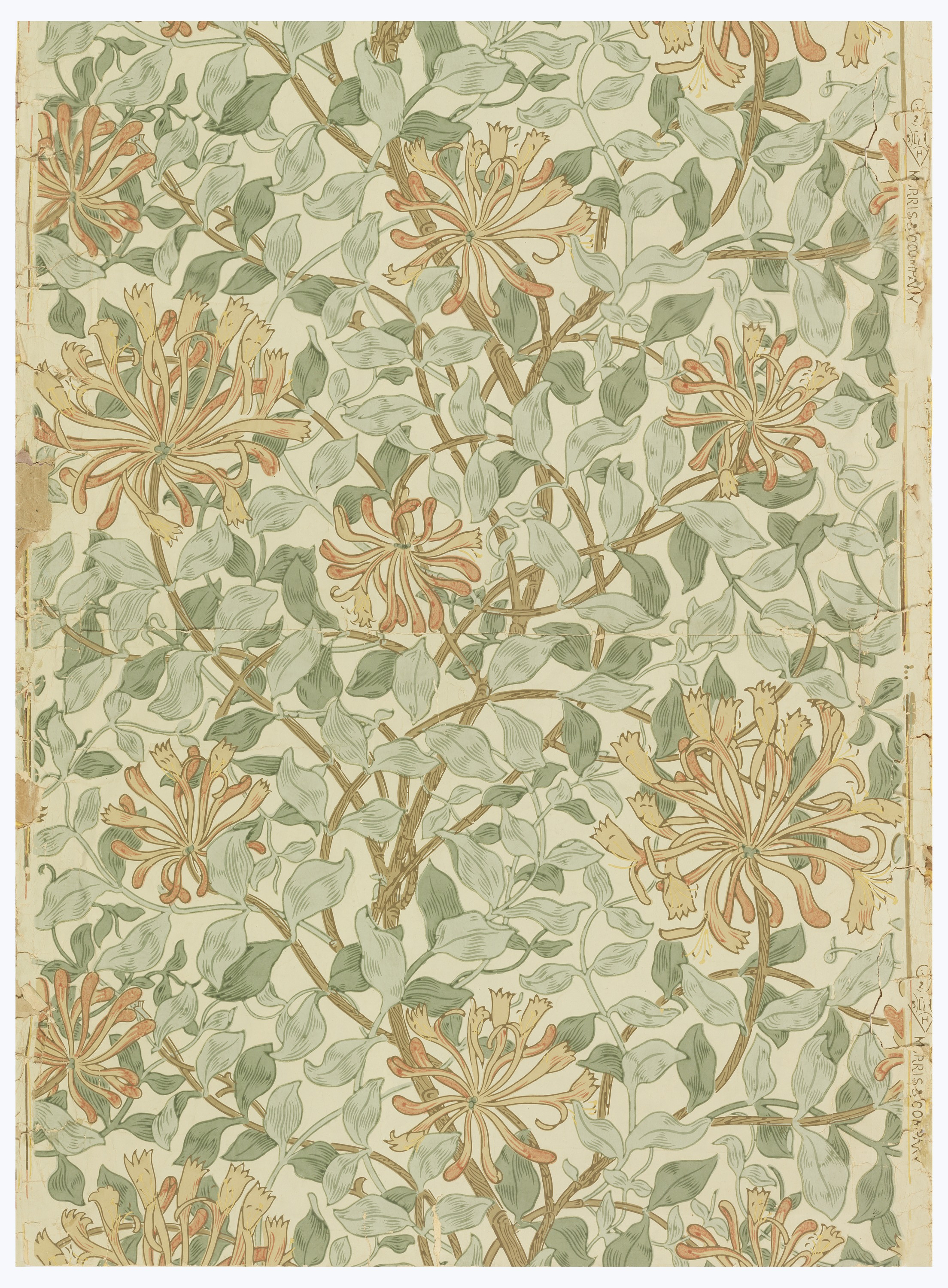 Sidewall, Honeysuckle; Designed by May Morris (British, 1862–1938); Made by Morris & Co. (United Kingdom); England; block-printed paper; 92 x 56.5 cm (36 1/4 x 22 1/4 in.); Gift of Dr. Francis J. Geck; 1980-73-1