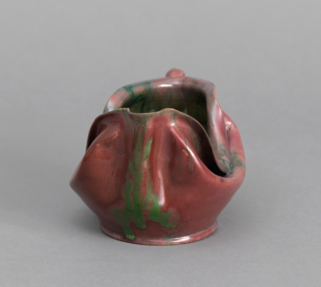 Pitcher (USA); Company: Biloxi Art Pottery (United States); Ceramist: George E. Ohr (American, 1857–1918); glazed earthenware; H x W x D: 10.2 x 19.4 x 11.7 cm (4 x 7 5/8 x 4 5/8 in.); Gift of Marcia and William Goodman; 1984-84-36