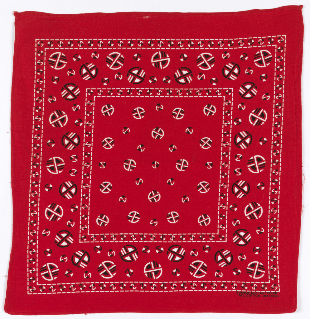 Bandana (USA); Manufactured by Wamcraft; cotton; H x W (a): 43.8 x 45.7 cm (17 1/4 x 18 in.) H x W (b): 45.1 x 45.7 cm (17 3/4 x 18 in.); Gift of Penelope McCain; 1986-40-8-a,b