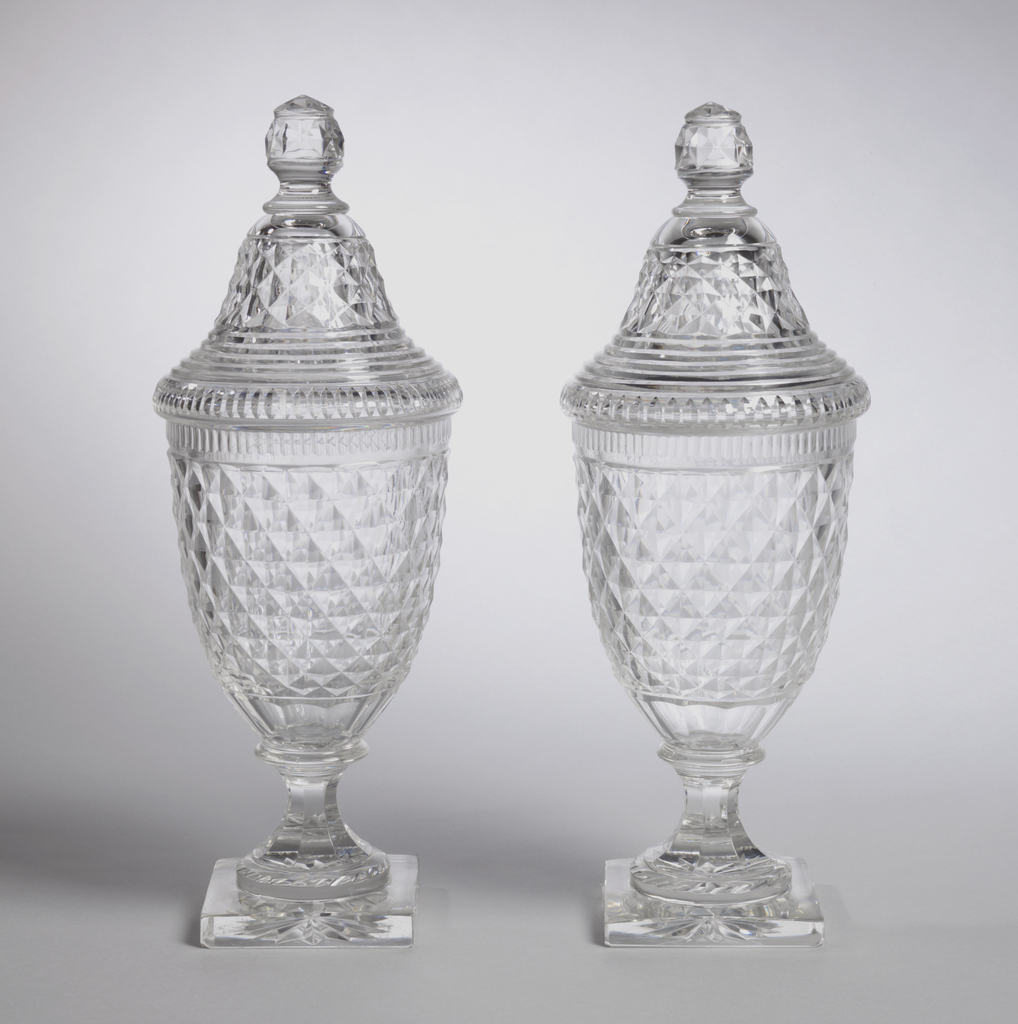 Jar And Lid (England); glass; H x diam.: 33 x 11.8 cm (13 x 4 5/8 in.); Bequest of Walter Phelps Warren; 1986-61-95-a,b