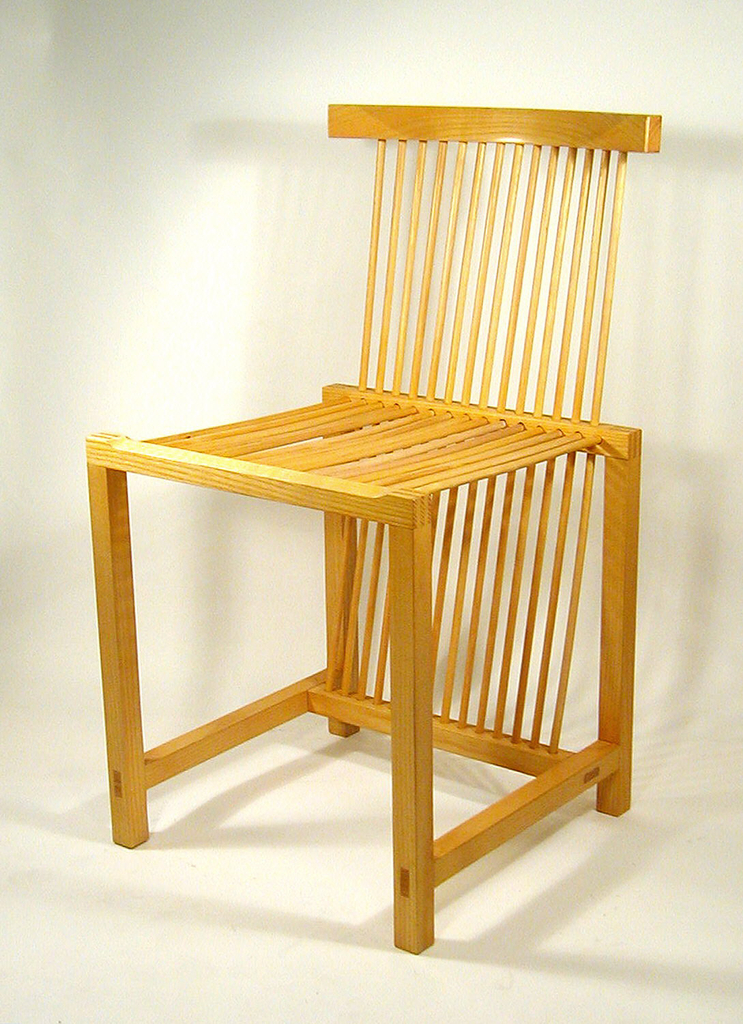 This is a side chair. It was designed by Albert Langenmayr. It is dated 1982 and we acquired it in 1987. Its medium is ash wood. It is a part of the Product Design and Decorative Arts department.
