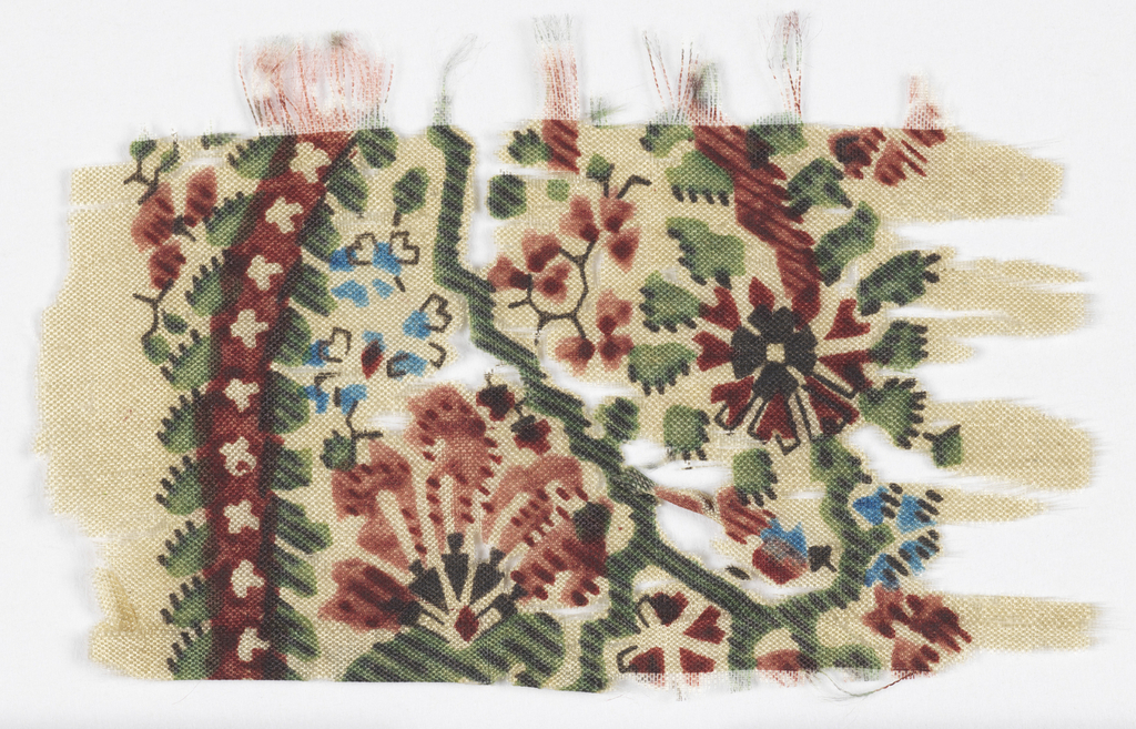 This is a Sample. We acquired it in 1987. Its technique is roller printed on plain weave. It is a part of the Textiles department.