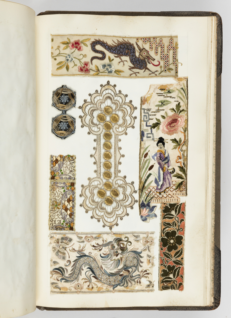 This is a Sample book of embroidery trimmings. It is dated 1900–10 and we acquired it in 1987. It is a part of the Textiles department.