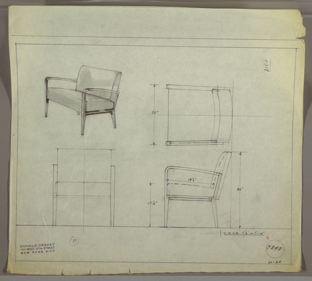 Stamps: Stamp in black ink at lower left: Donald Deskey/145 West 57th Street/New York City