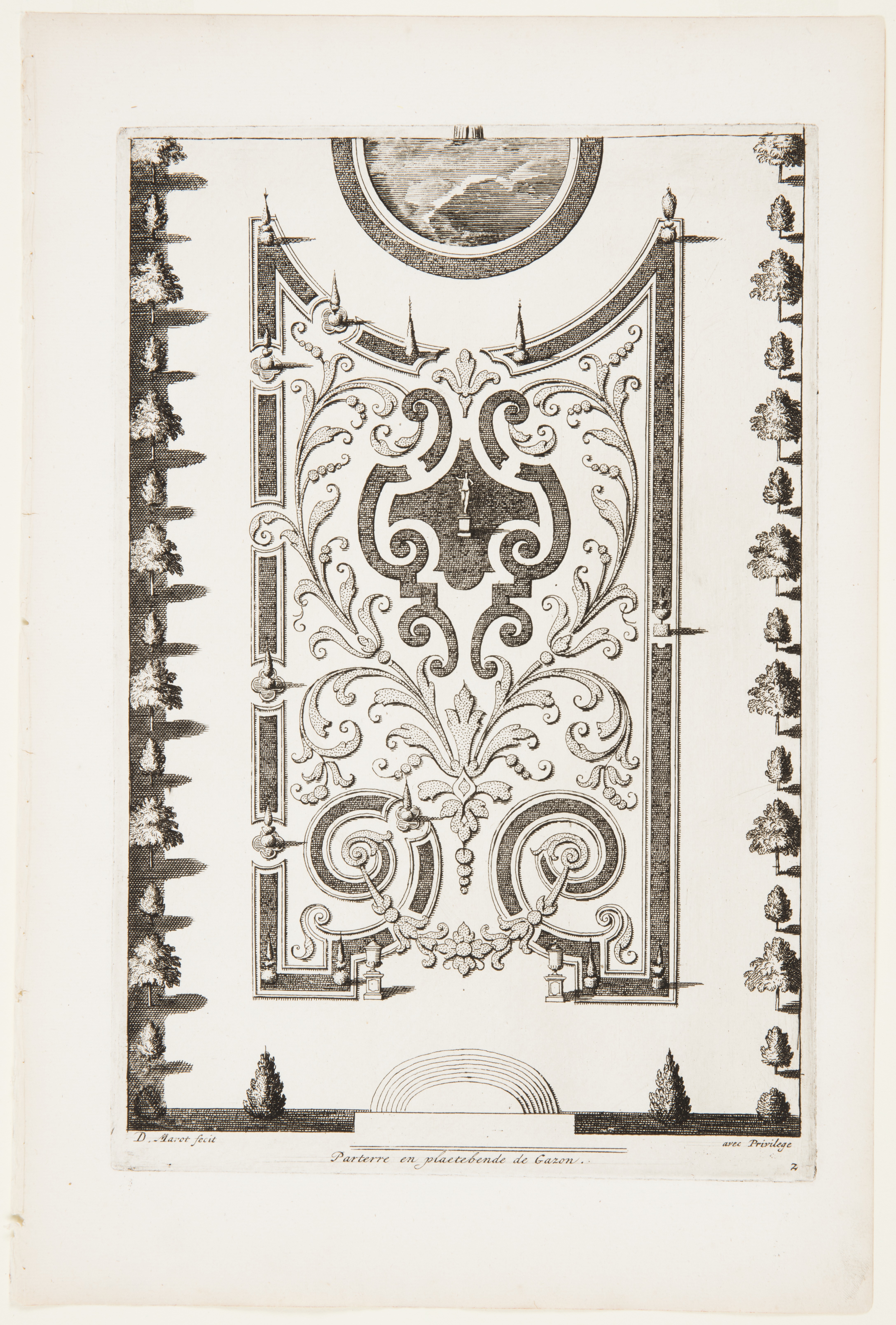 Inscribed in plate, lower margin: Parterre en plactebende de Gazon.; lower right: avec Privilege / 2