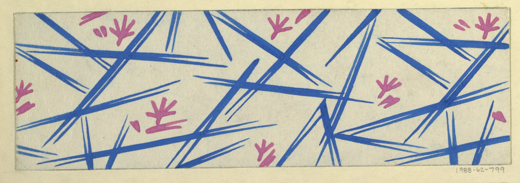 Drawing, Textile Design: Annie; Designed by Juliana Ryšavy (Austrian, b. 1893, active early 20th century); Made for Wiener Werkstätte (Austria); Austria; brush and gouache on paper; 6.4 × 20.6 cm (2 1/2 × 8 1/8 in.) Mat: 31.8 × 45.1 cm (12 1/2 × 17 3/4 in.); Museum purchase from Smithsonian Collections Acquisition and Decorative Arts Association Acquisition Funds; 1988-62-799