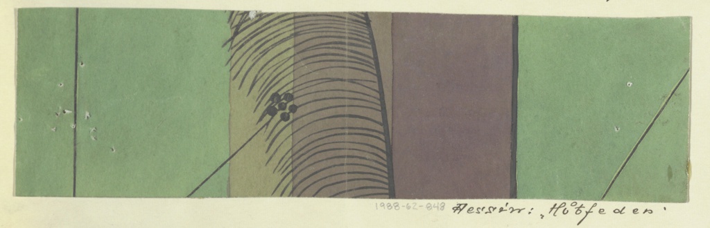 Drawing, Textile Design: Hutfeder (Feather on a Hat); Designed by Felice Rix-Ueno (Austrian, 1893–1967, active Japan 1935–1967); Made for Wiener Werkstätte (Austria); Austria; brush and watercolor, gouache on paper; 5.7 × 20.3 cm (2 1/4 in. × 8 in.) Mat: 31.4 × 45.1 cm (12 3/8 × 17 3/4 in.); Museum purchase from Smithsonian Collections Acquisition and Decorative Arts Association Acquisition Funds; 1988-62-848