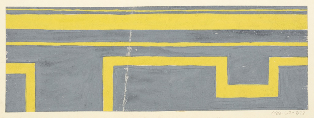 Drawing, Textile Design: Jussuf; Designed by Felice Rix-Ueno (Austrian, 1893–1967, active Japan 1935–1967); Made for Wiener Werkstätte (Austria); Austria; brush and gouache on paper; 6.5 × 18.6 cm (2 9/16 × 7 5/16 in.) Mat: 31.6 × 45.1 cm (12 7/16 × 17 3/4 in.); Museum purchase from Smithsonian Collections Acquisition and Decorative Arts Association Acquisition Funds; 1988-62-872