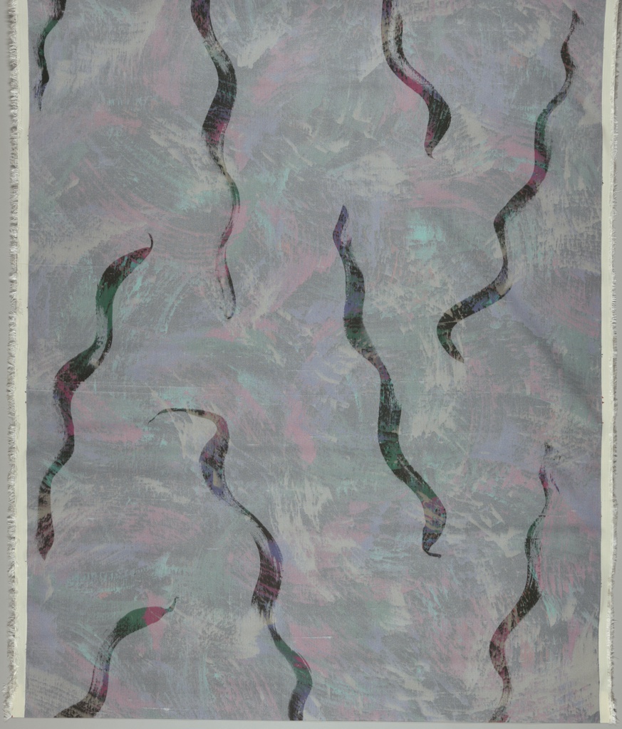 This is a Fragment. It was company: Marc/Raymond and designed by Ray Wenzel. It is dated 1985 and we acquired it in 1988. Its medium is cotton, silk and its technique is plain weave, painted. It is a part of the Textiles department.