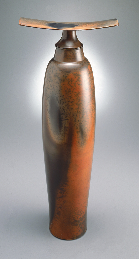 Erigone a lame Vase And Lid; France; raku-fired ceramic; H x W: 62 x 26 cm (24 7/16 x 10 1/4 in.); Museum purchase from Decorative Arts Association Acquisition Fund; 1989-17-1-a,b