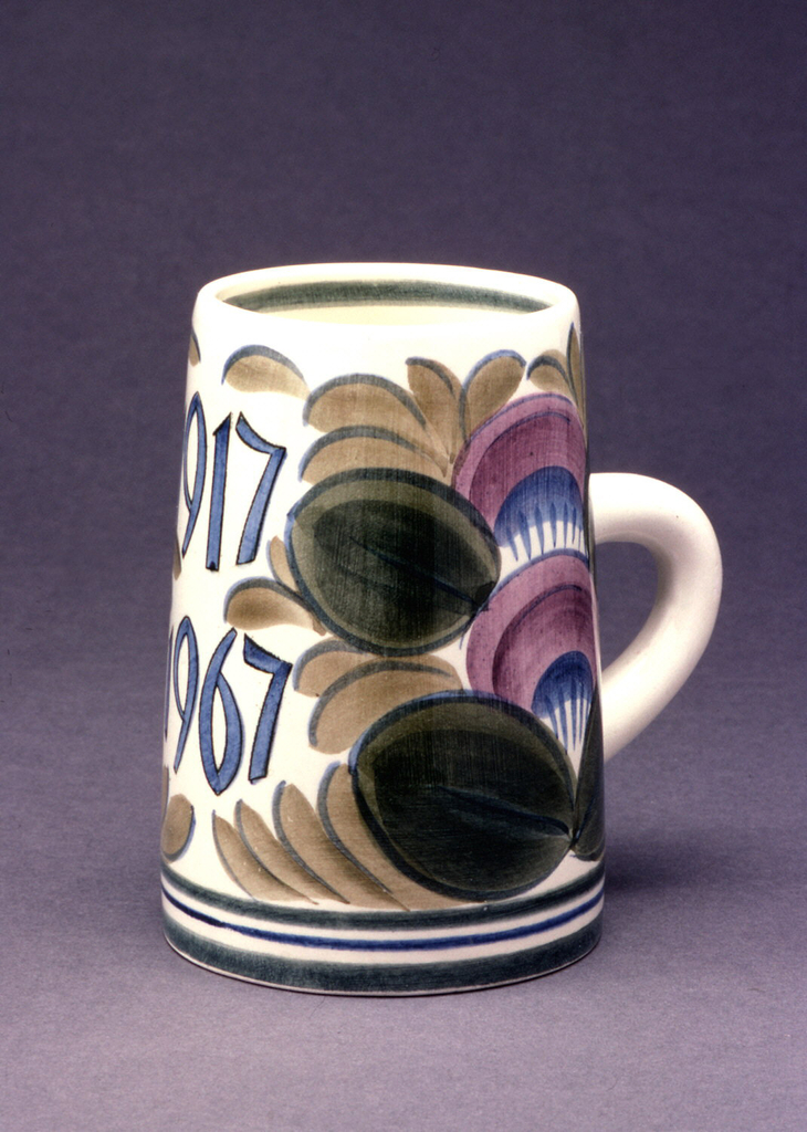1917-1967 Mug; Manufactured by Konakovsky Ceramics Factory (Russia); earthenware, glaze; H: 13.5 cm (5 5/16 in.); The Henry and Ludmilla Shapiro Collection; Partial gift and partial purchase through the Decorative Arts Association Acquisition and Smithsonian Collections Acquisition Program Funds; 1989-41-114
