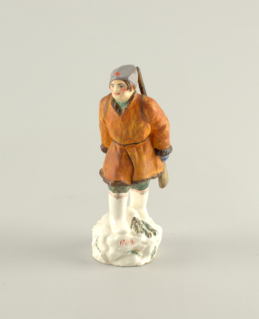 Partisan on the March Figure; Designed by Natalya Yakovlevna Danko (Russian, b. Georgia, 1892–1942); Manufactured by State Porcelain Factory (Russia); enameled porcelain, overglaze pigment?; H: 20.5 cm (8 1/16 in.); The Henry and Ludmilla Shapiro Collection; Partial gift and partial purchase through the Decorative Arts Association Acquisition and Smithsonian Collections Acquisition Program Funds; 1989-41-119