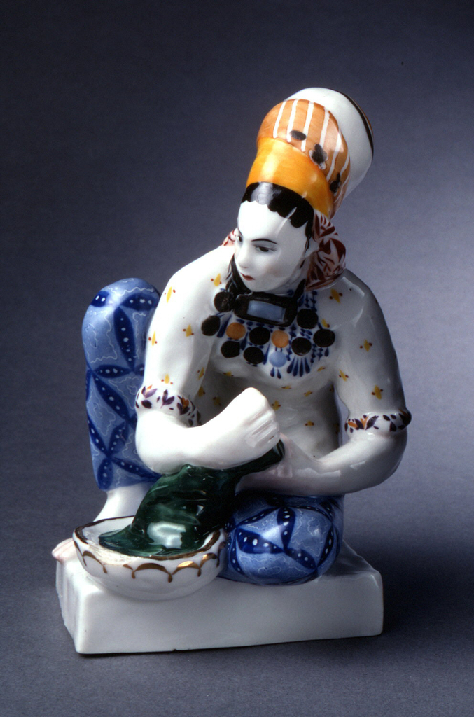 This is a figure. It was manufactured by Lomonosov Porcelain Factory. It is dated 1925–35 and we acquired it in 1989. Its medium is porcelain, enamel, gilding. It is a part of the Product Design and Decorative Arts department.