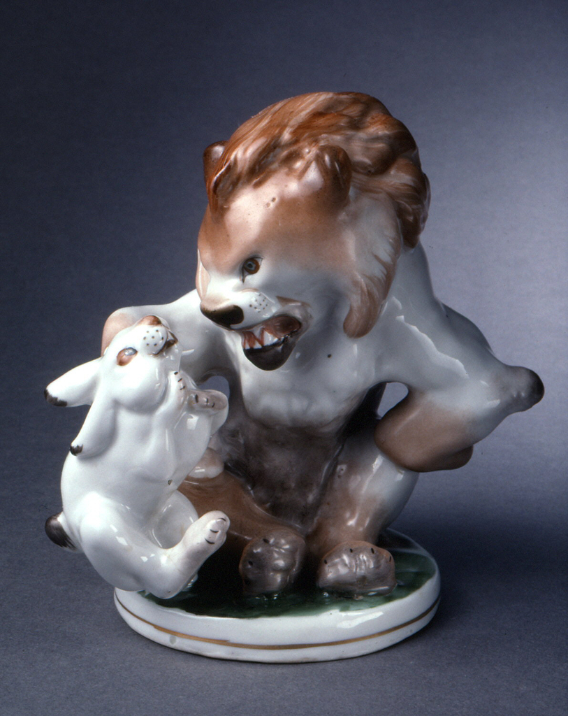 Lion and Rabbit Figure; Manufactured by Lomonosov Porcelain Factory (Russia); porcelain, enamel; 14.5 cm (5 11/16 in.); The Henry and Ludmilla Shapiro Collection; Partial gift and partial purchase through the Decorative Arts Association Acquisition and Smithsonian Collections Acquisition Program Funds; 1989-41-201