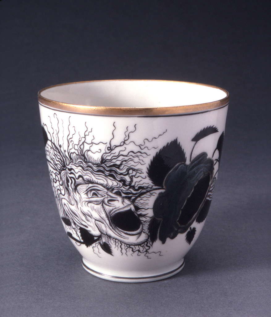 Rose and Mask Cup; Designed by Sergei Vasilievich Chekhonin (Russian, 1878 - 1936); Manufactured by State Porcelain Factory (Russia); porcelain, enamel, gilding, silvering; H: 9.2 cm (3 5/8 in.); The Henry and Ludmilla Shapiro Collection; Partial gift and partial purchase through the Decorative Arts Association Acquisition and Smithsonian Collections Acquisition Program Funds; 1989-41-66
