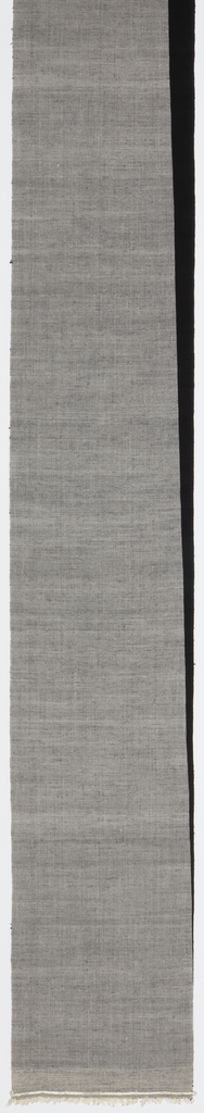 This extraordinary kimono length transitions over its forty-five foot span from gray at one end to black at the other, creating a striking diagonal composition. The flawless line of the diagonal and the evenness of the gray color, the result of crossing white warps with black wefts, is a testament to the skill of the dyer and weaver.