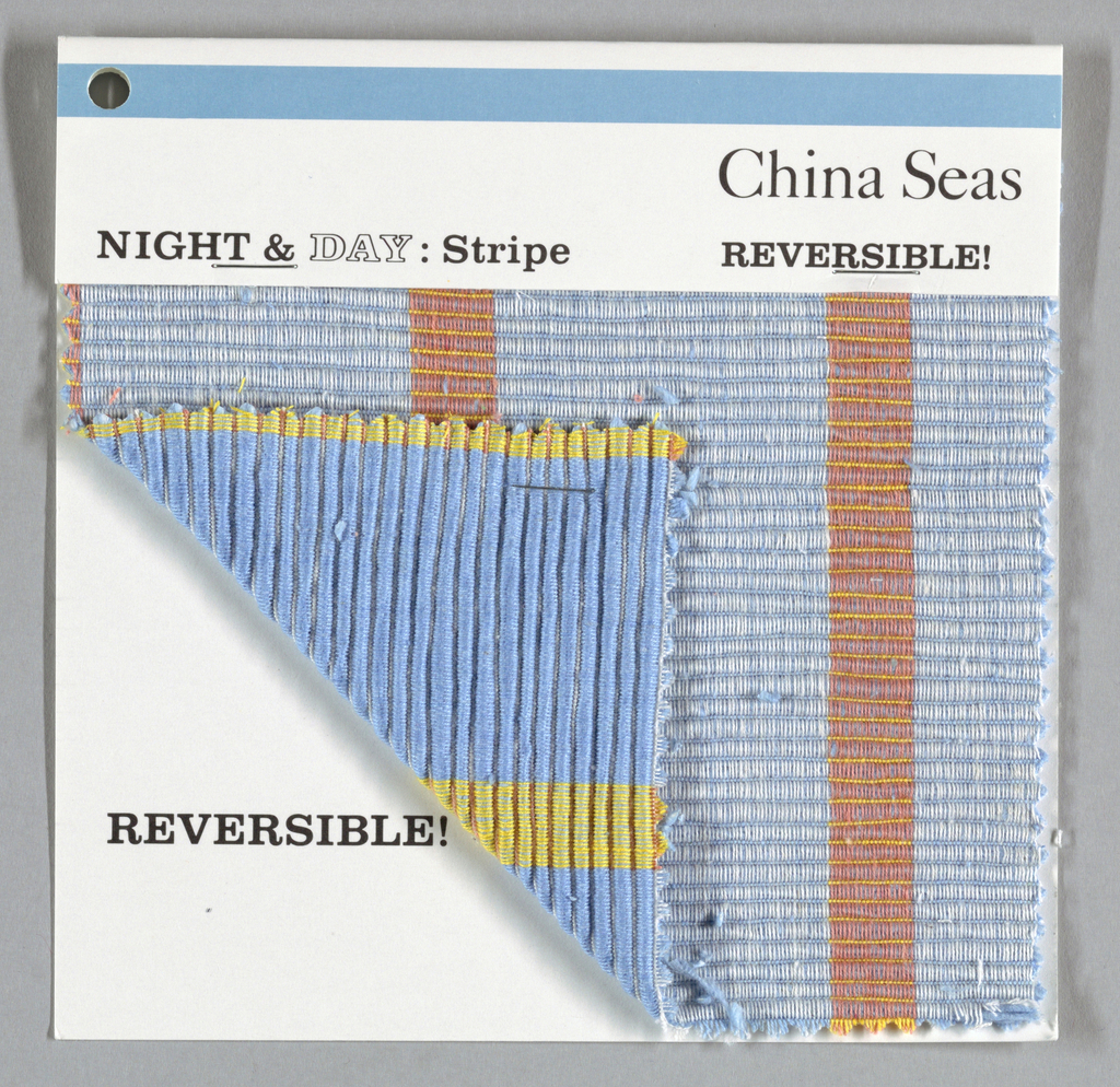 Textile, Night and Day Stripe; Designed by Inger McCabe Elliott (American, b. Norway, 1933); Company: China Seas; USA; cotton; 1990-13-5-a/i