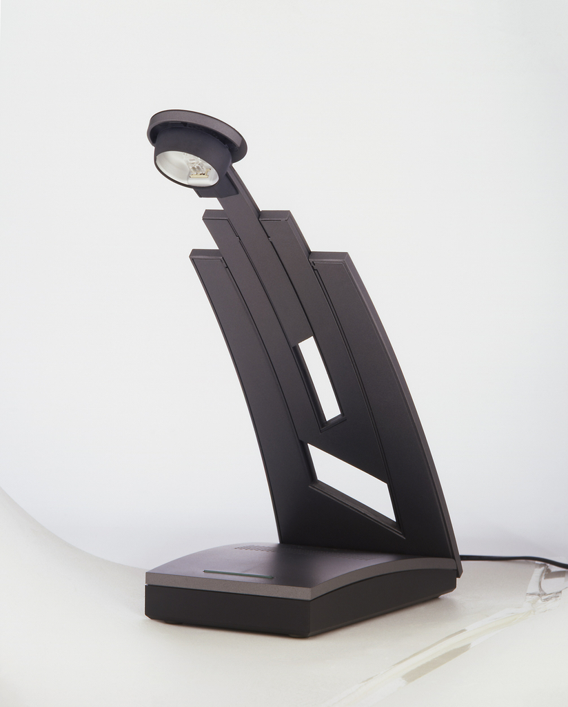 Jazz Lamp; Designed by Ferdinand Alexander Porsche (b. 1935); Manufactured by PAF (Italy); Italy; plastic, metal, halogen bulb; 19.4 x 22 x 12 cm (7 5/8 x 8 11/16 x 4 3/4 in.); Gift of Koch & Lowy.; 1991-12-1