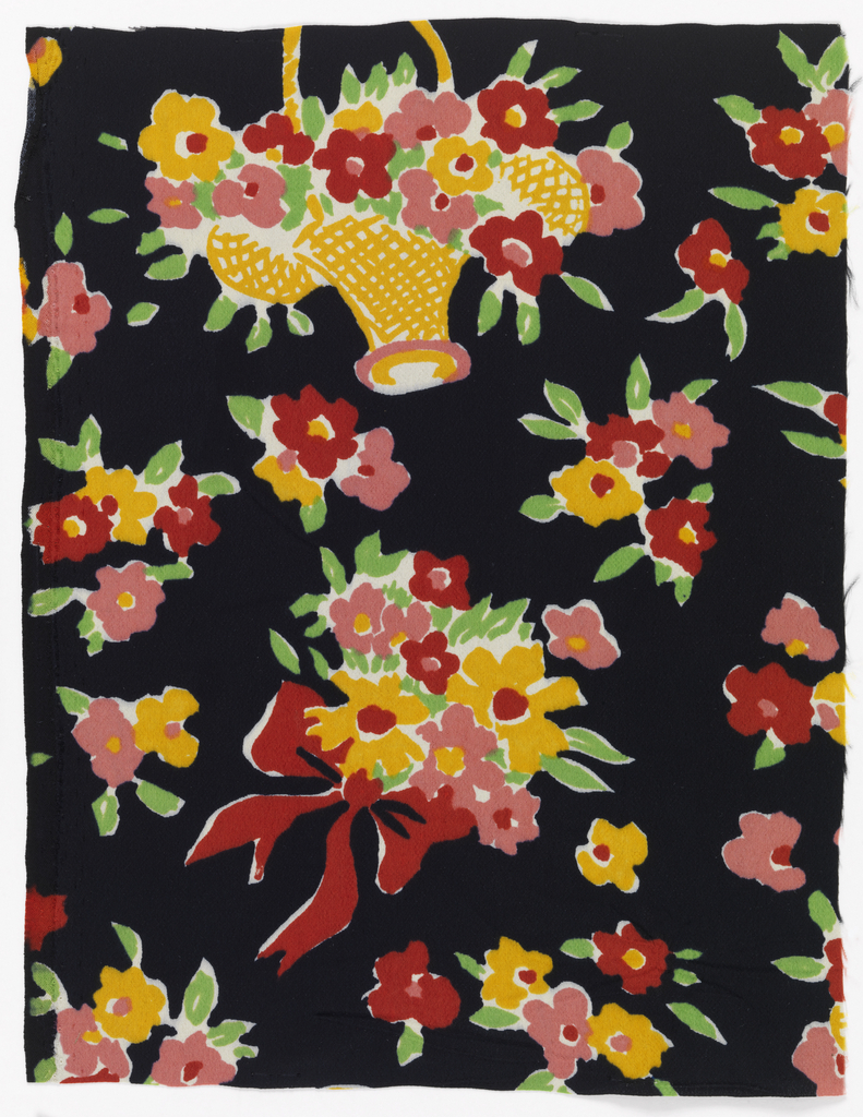 This is a Textile. It was company: Miss Mouse. It is dated 1973 and we acquired it in 1991. Its medium is synthetic and its technique is roller printed on plain weave foundation. It is a part of the Textiles department.