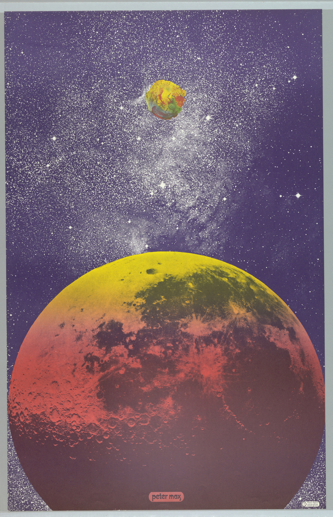 Printed in black, lower center: peter max; in blue, lower right: 9 Outer Space/ PETER MAX POSTER CORP./ All Rights Reserved Litho in U.S.A.