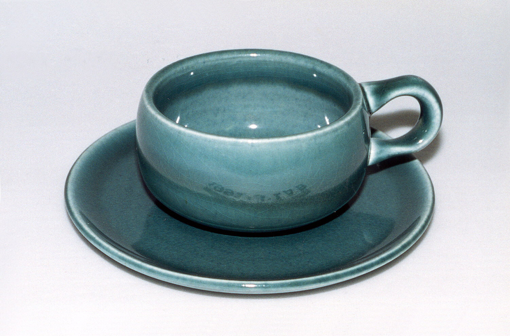 This is a cup and saucer. It was designed by Russel Wright. It is dated 1939–59 and we acquired it in 1991. Its medium is glazed ceramic. It is a part of the Product Design and Decorative Arts department.